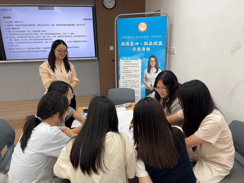 李曼从职业生涯、职业生涯规划基础出发,以“三叶草模型”为核心框架,阐释职业可持续发展的三大支柱:兴趣、价值、能力,衍生出理想职业的底层逻辑,通过小组活动兴趣星空图进行优势与能力梳理SWOT分析,引导同学们剖析自身优势,掌握优势挖掘方法,搭建能力发展模型,助力同学们提升职业竞争力。