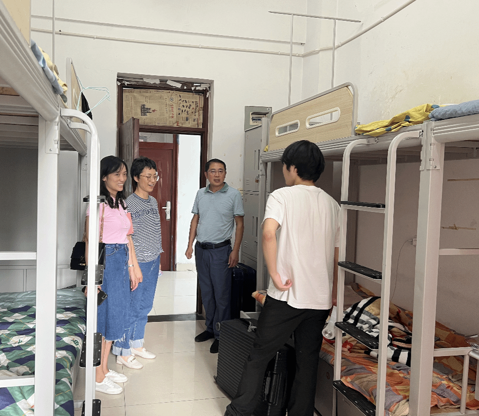 9月10日下午,太阳成集团tyc9728经理王浩澂、党总支书记王霖、副书记何酉宁与新生班级辅导员来到宿舍寝室,看望学院2023级500余名新生。