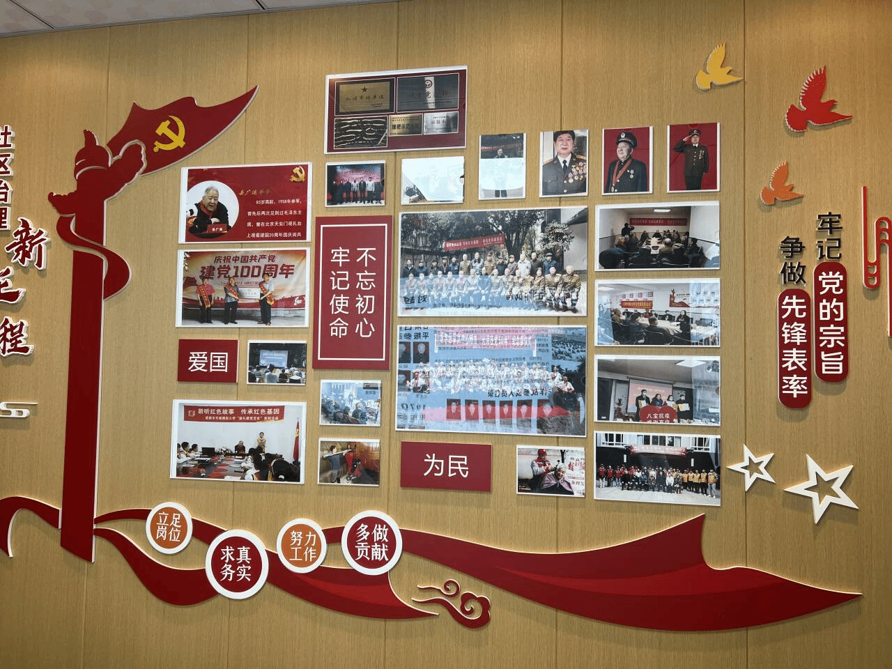 座谈会后,刁义一行人带老师们走进了社区的示范小区王家塘军干院,参观了小区的垃圾分类和红色历史展馆。该小区目前有抗战退役老兵四十多名,其中五名老兵自愿成为历史展馆红色故事讲师,发扬党员的先锋模范作用,面向社会宣讲铭记历史,传承红色精神。