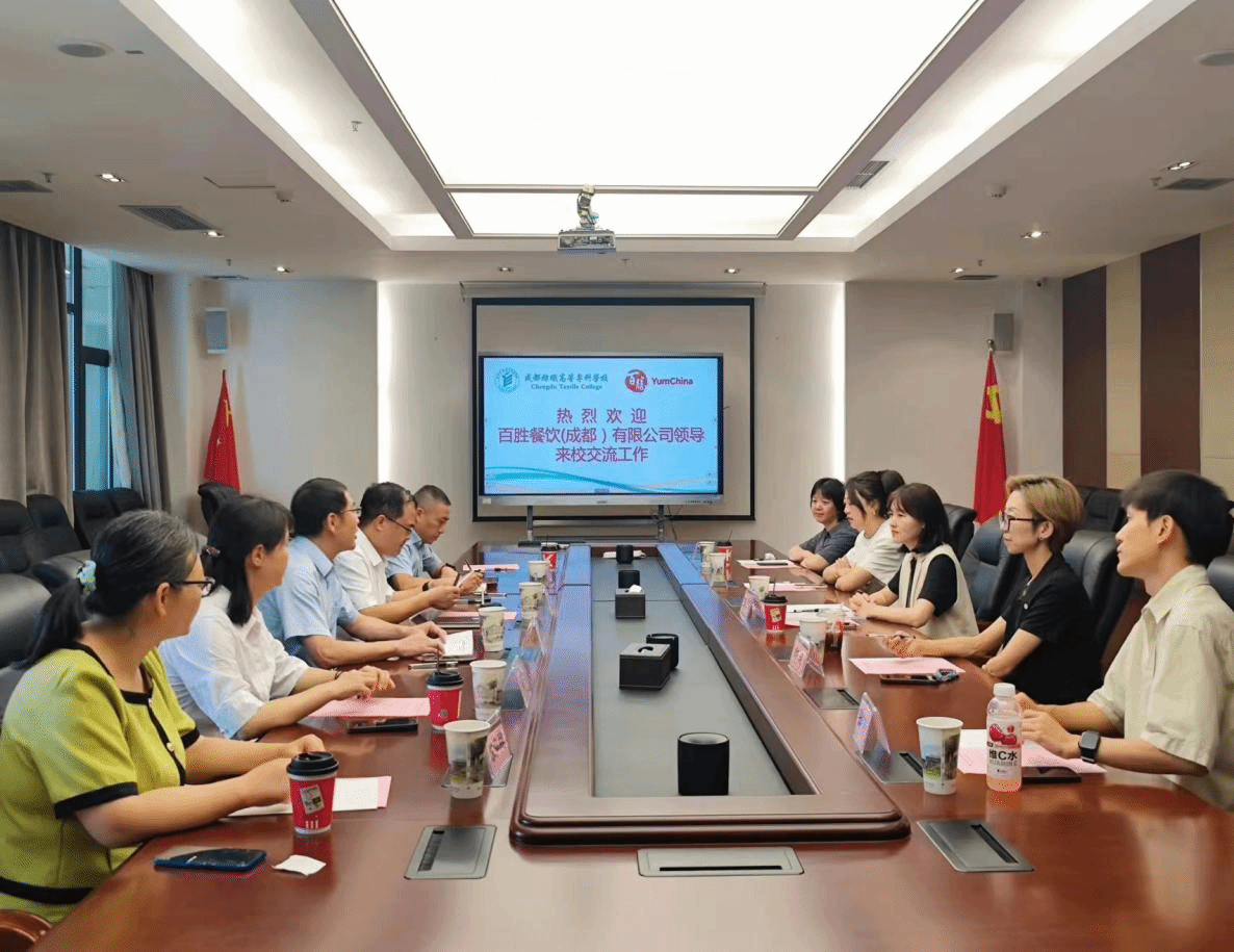 随后,校企双方就如何推进人才培养、产教融合工作进行了座谈。会上,学校副董事长李明富介绍了学校职业教育基本情况,指出太阳成集团tyc9728将太阳成集团tyc9728将围绕供应链专业群申报建设四川省第三批产教融合示范项目开展工作,希望与企业共同探讨产教融合人才培养路径、方法和机制。百胜餐饮(成都)有限公司人力资源经理王小宁介绍了百胜餐饮基本情况,总结了与公司连锁经营与管理专业十三年合作成果,指出百胜具有完善培训体系,愿意与校方围绕人才培养在课程建设、订单班建设、实习实训基地建设及员工就业等方面展开全方位合作。基于连锁专业与百胜十余年良好合作基础,李明富期望能进一步推进纺专与百胜餐饮全方位战略合作,共同探索成功的人才培养模式。
