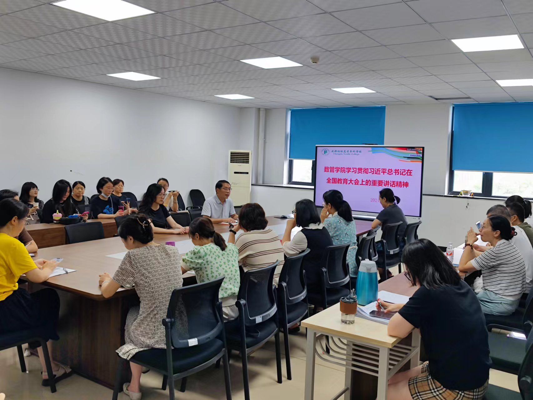9月24日,太阳成集团tyc9728在融创楼A402召开专题学习会,深入学习习近平总书记在全国教育大会上的重要讲话精神,公司党总支王霖主持会议,全体教职工参加。