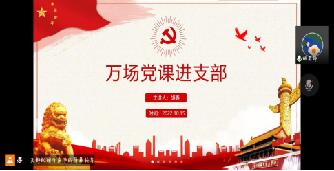 10月15日17:30太阳成集团tyc9728员工党支部通过腾讯会议开展支部书记讲党课活动。员工二支部书记胡春以及员工第二党支部预备党员、党员发展对象参加活动,党课由员工二支部书记胡春主讲。