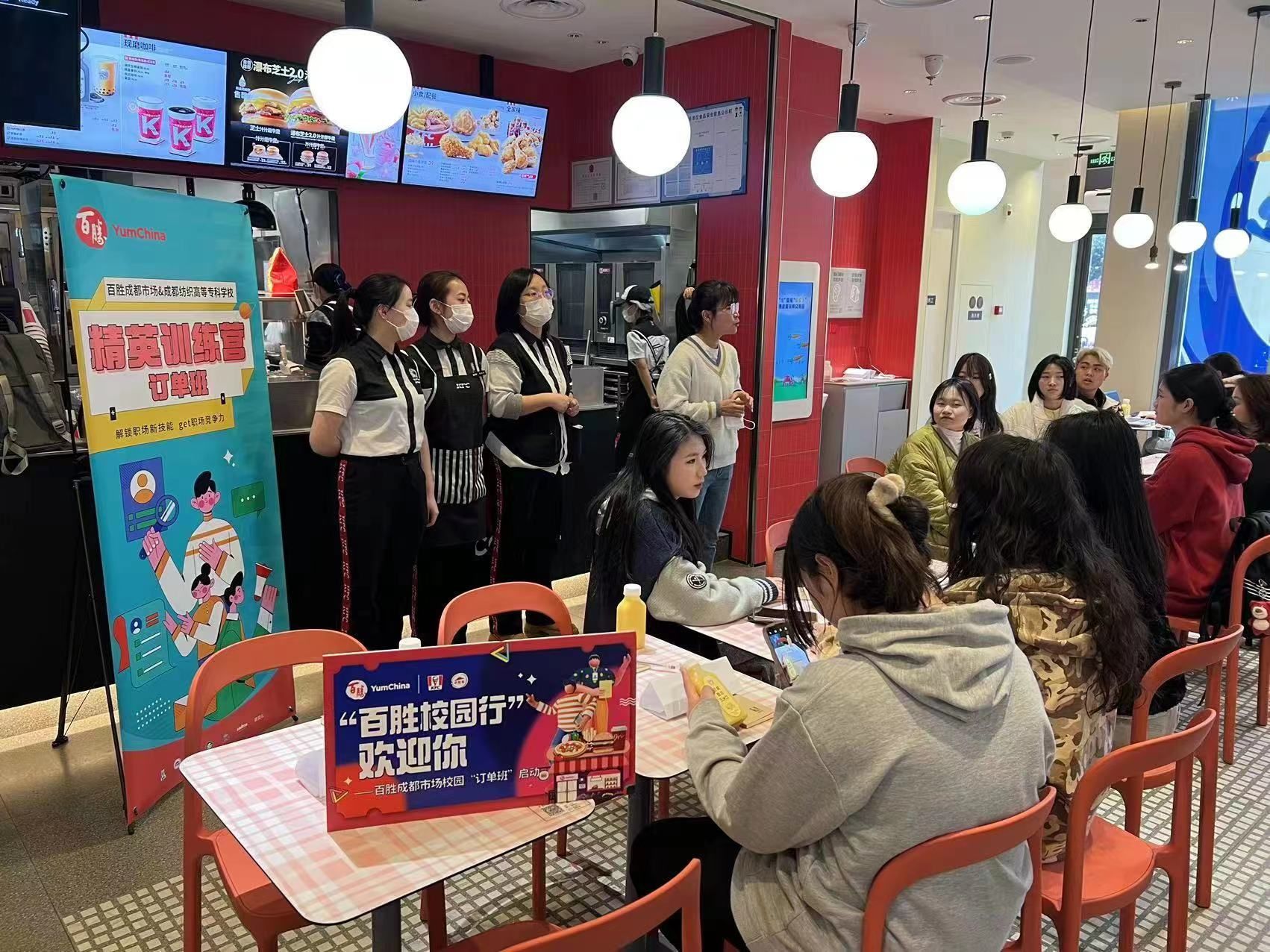 2月28日下午,太阳成集团tyc9728与百胜餐饮集团成都公司联合举办的连锁经营与管理专业“百胜精英训练营”订单班正式启动,招生宣讲招募会在教学楼C101顺利举行。百胜成都公司校企负责人印玥、连锁专业员工肯德基资深副经理陈维莎和秦敏、区域经理李梁,公司党总支书记王霖、连锁经营专业负责人陈泓樾、专业教师钟峥及连锁专业21级员工参加会议。