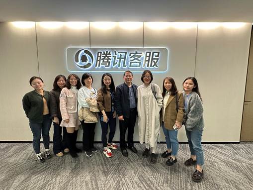 双方在公司总部进行了交流座谈,柴力介绍了腾讯云智服企业情况,以及客服全国三地布局,成都地区承接了社交类服务、游戏类服务、未成年人服务以及海外产品服务等业务内容。刘莹介绍了成都基地目前有2000余人,围绕用人需求、校园招聘、实习岗位做了详细介绍。